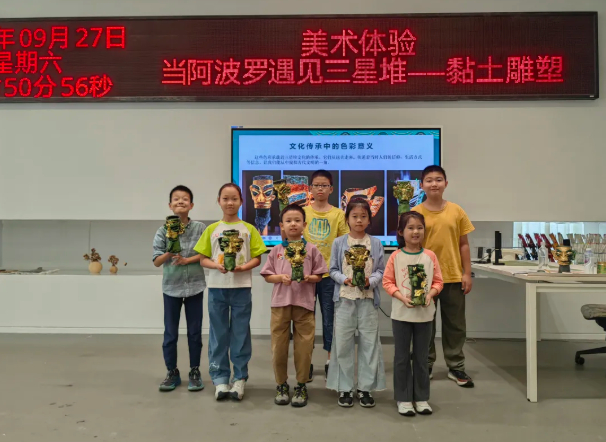 9月27日,天津美术馆举办“当阿波罗遇见三星堆——黏土雕塑”主题活动。活动伊始,主讲老师以青铜纹饰为“钥匙”,为同学们打开古蜀文明的艺术之门。当大屏幕上青铜面具高鼻纵目、阔嘴大耳的
